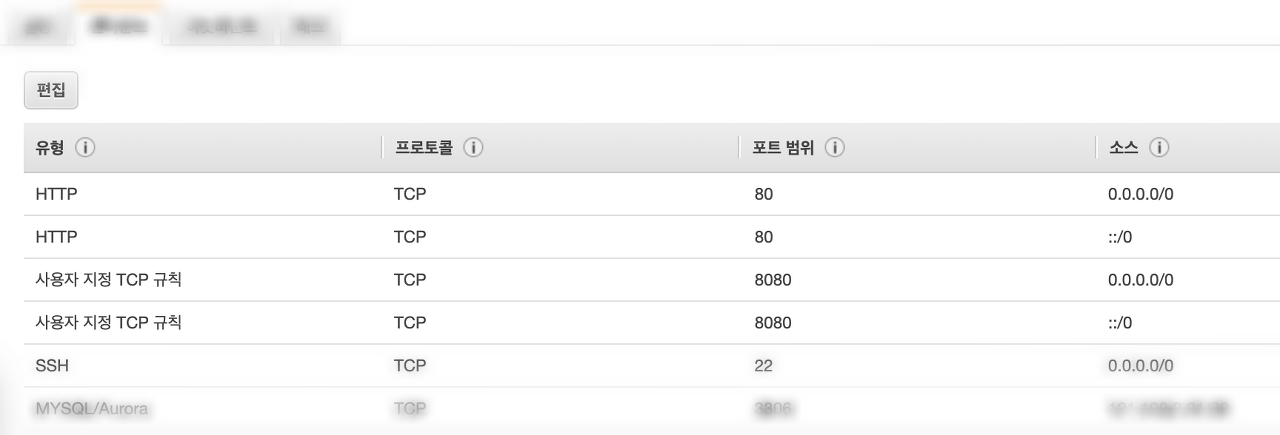 EC2 인스턴스를 만들 때 저는 보안그룹에서 3306 포트는 제 컴퓨터에서만 접속 가능하게 열어 줬습니다